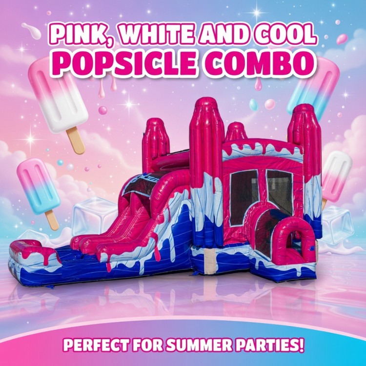 The Pink, White and Cool Popsicle Combo is a deliciously fun, eye-catching inflatable that brings sweet summer vibes to any event! Featuring a playful popsicle-inspired design in vibrant pink, crisp white, and cool blue accents with dripping “melted” details, this combo instantly stands out and draws crowds.